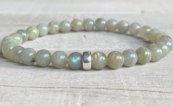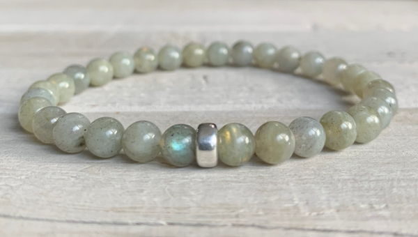 Im schmeichelhaften MEERGRÜN Armband sind filigrane (ca. 6 mm) Labradorit Edelsteinperlen zu einem minimalistischen Armband verarbeitet.