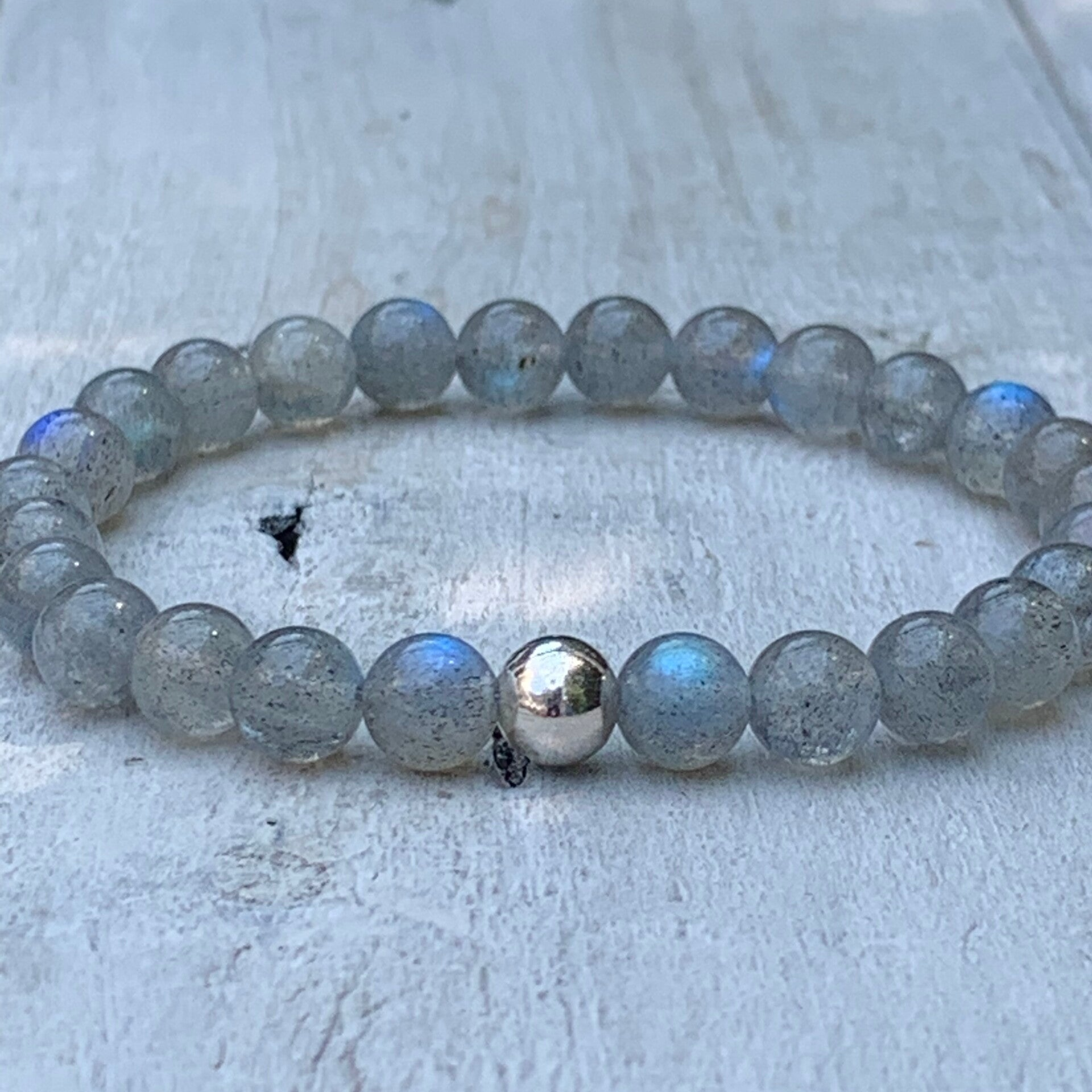 Das auffallendste Merkmal eines Labradorits ist das irisierende Farbspiel und der blaue Schimmer. Aus einem - auf den ersten Blick - unscheinbar wirkenden Edelstein wird bei einem bestimmten Lichteinfall ein zauberhaft magisches Schmuckstück. So auch hier bei diesen besonders schönen Rondellen. Häufig schlicht hellgrau, blitzt urplötzlich die blaue Lichtreflexion der Labradoreszenz auf.