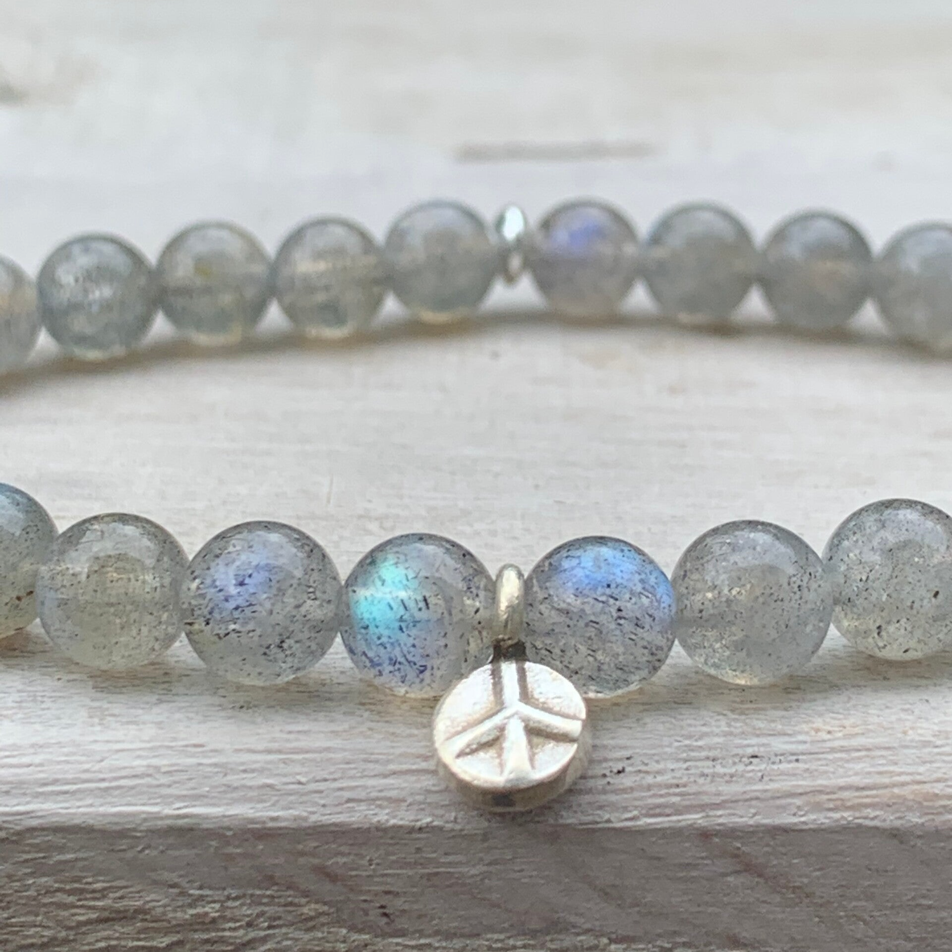 Das HIMMELSSTÜRMERIN PEACE Edelstein Mala Armband beeindruckt mit filigranen 6 mm Labradorit Edelsteinen, veredelt mit einem handgearbeiteten Karen Hill Tribe Feinsilber Anhänger im edlen Bohostyle. Ein echtes Edelsteinarmband aus besonders feinen Qualitäten. Ich verspreche nicht zuviel, wenn ich sage, ihr werdet begeistert sein von den wunderschönen Lichtreflexionen und dem kleinen, massiven und zauberhaft detailliert gearbeiteten Feinsilber Anhänger.
