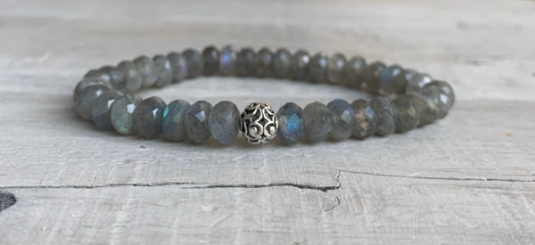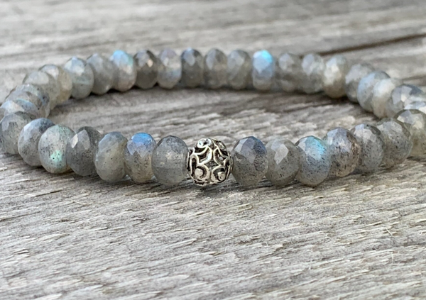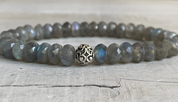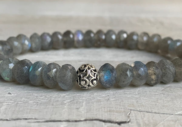 Im filigranen WUNSCHTRAUM Edelstein Armband sind facettierte Labradorit Rondelle, veredelt mit einer zauberhaften 925 Sterling Silber Perle, zu einem elegant funkelnden Lieblingsschmuckstück verarbeitet. Das Perlenarmband im edlen Bohostyle wirkt sehr mondän und durch seine intensive Lichtbrechung unglaublich geheimnisvoll. Die auffallend schöne 925 Sterling Silber Perle zeigt ein prachtvolles Ornament.