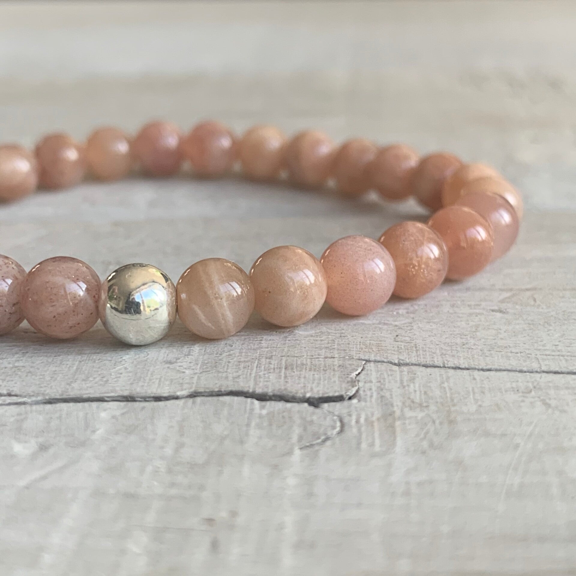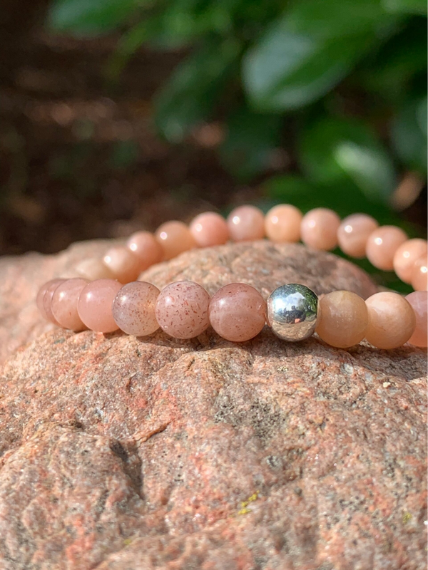 Im schlichten MORGENGLANZ Edelsteinarmband sind echte, lebhaft gemusterte Sonnensteine, veredelt mit einer minimalistischen 925 Sterling Silber Perle, zu einem eleganten Boho Lieblingsschmuckstück verarbeitet.
