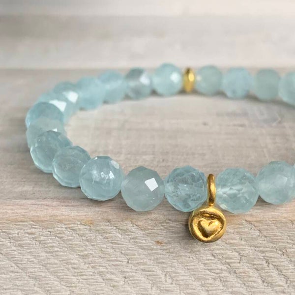 AQUAMARIN EDELSTEIN ARMBAND | Karen Hill Tribe Vermeil-Gold | WOLKENFREI