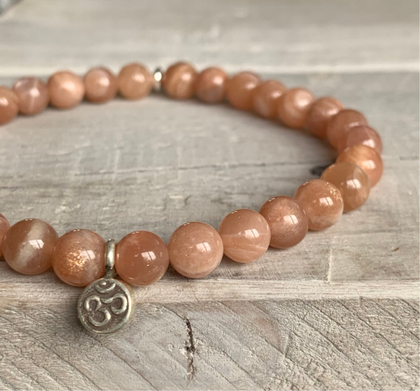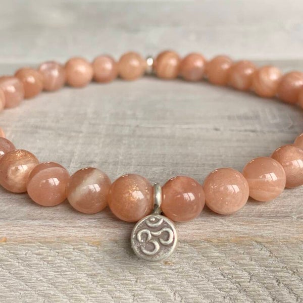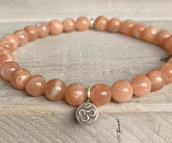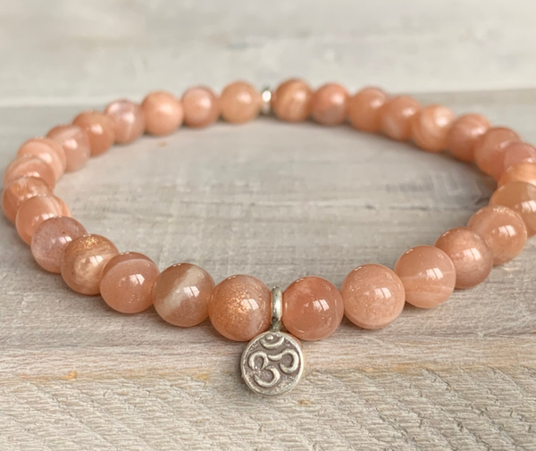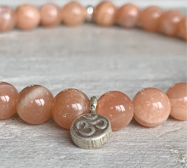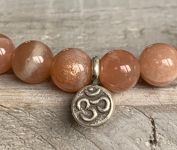 Im filigranen Sonnenstein Edelstein Armband SONNENGRUß sind feine Sonnensteinperlen, veredelt mit einem zauberhaft kleinen Karen Hill Tribe OM Anhänger sowie einem feinen 925 Sterling Silber Rondell, zu einem eleganten Lieblingsschmuckstück im minimalistischen Boho-Look verarbeitet. Der derbe Charakter des massiven Anhängers kreiert einen zauberhaften Boho-Look.