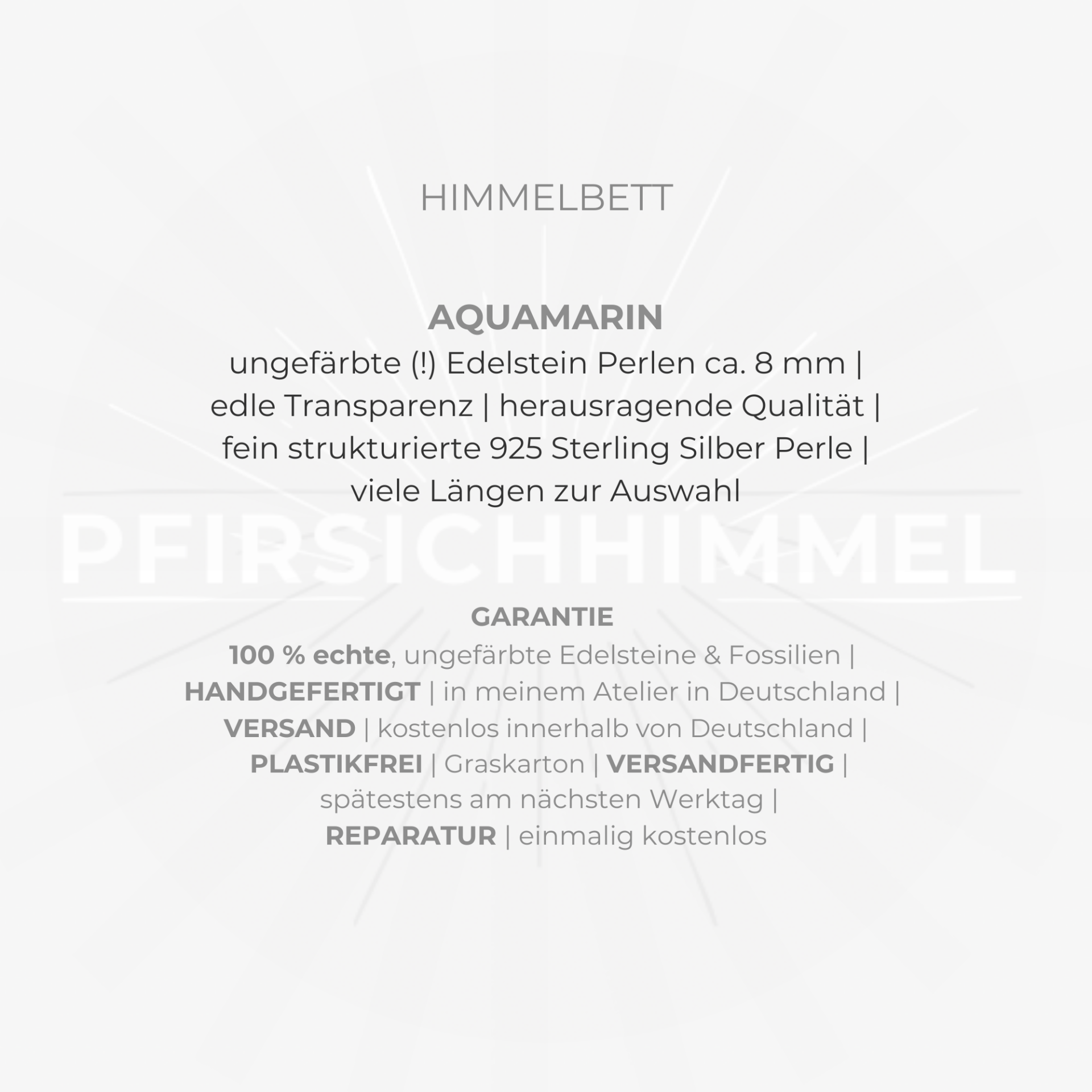 AQUAMARIN Edelstein Armband 8 mm | 925 Sterling Silber Perle | HIMMELBETT
