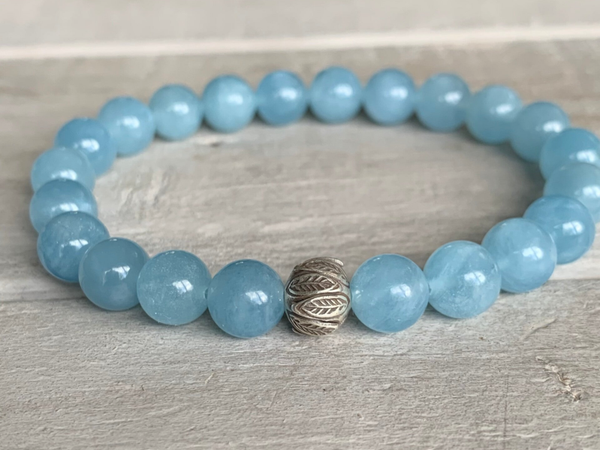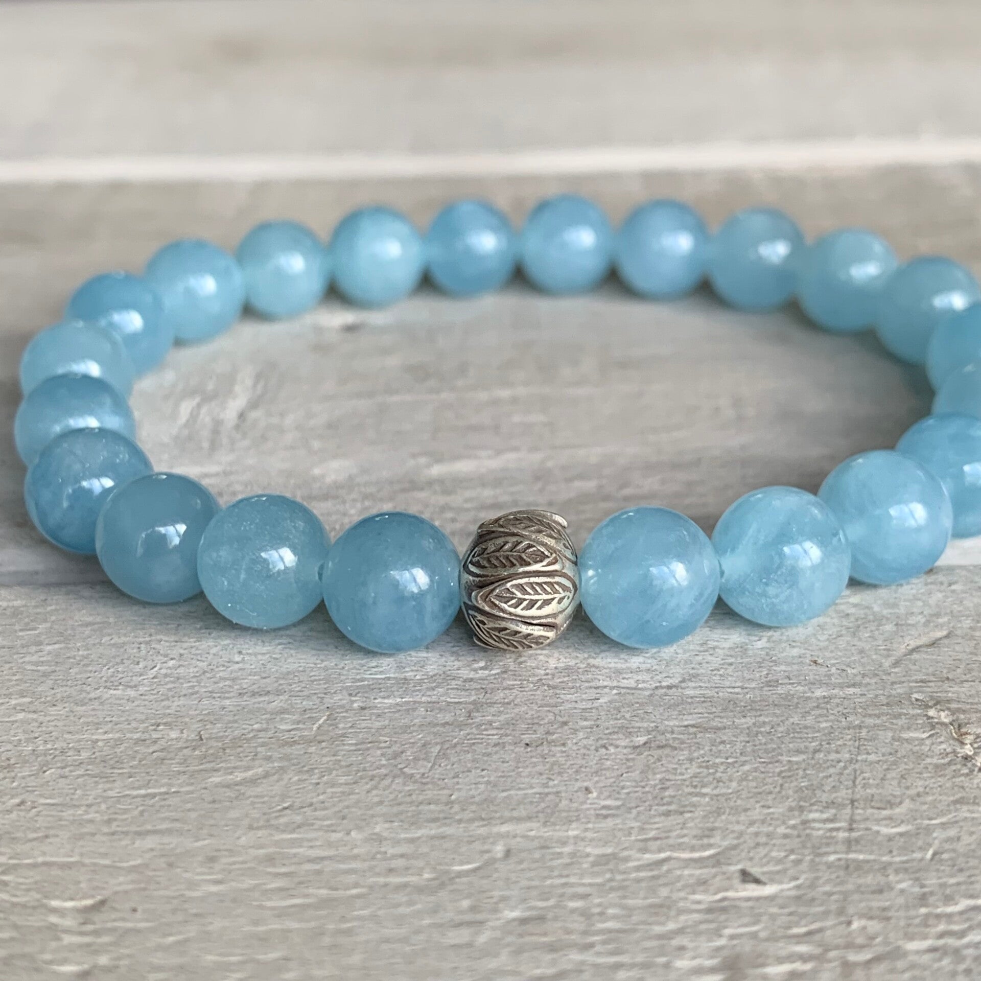AQUAMARIN EDELSTEIN ARMBAND 8 mm | Karen Hill Tribe Feinsilber Lotus | HIMMELBETT