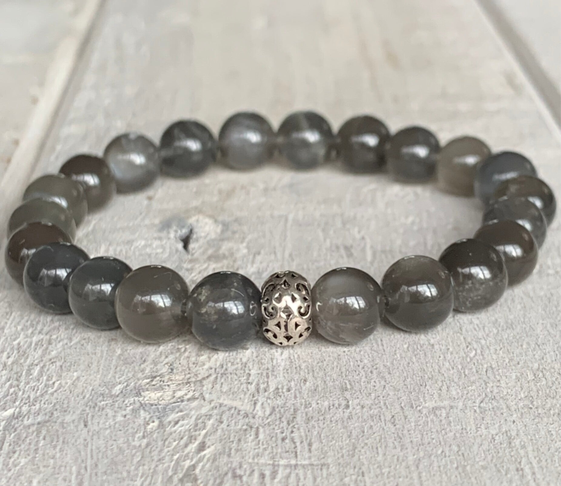 MONDSTEIN EDELSTEIN ARMBAND 8 mm | 925 Sterling Silber Rondell Ornament | MONDNACHT