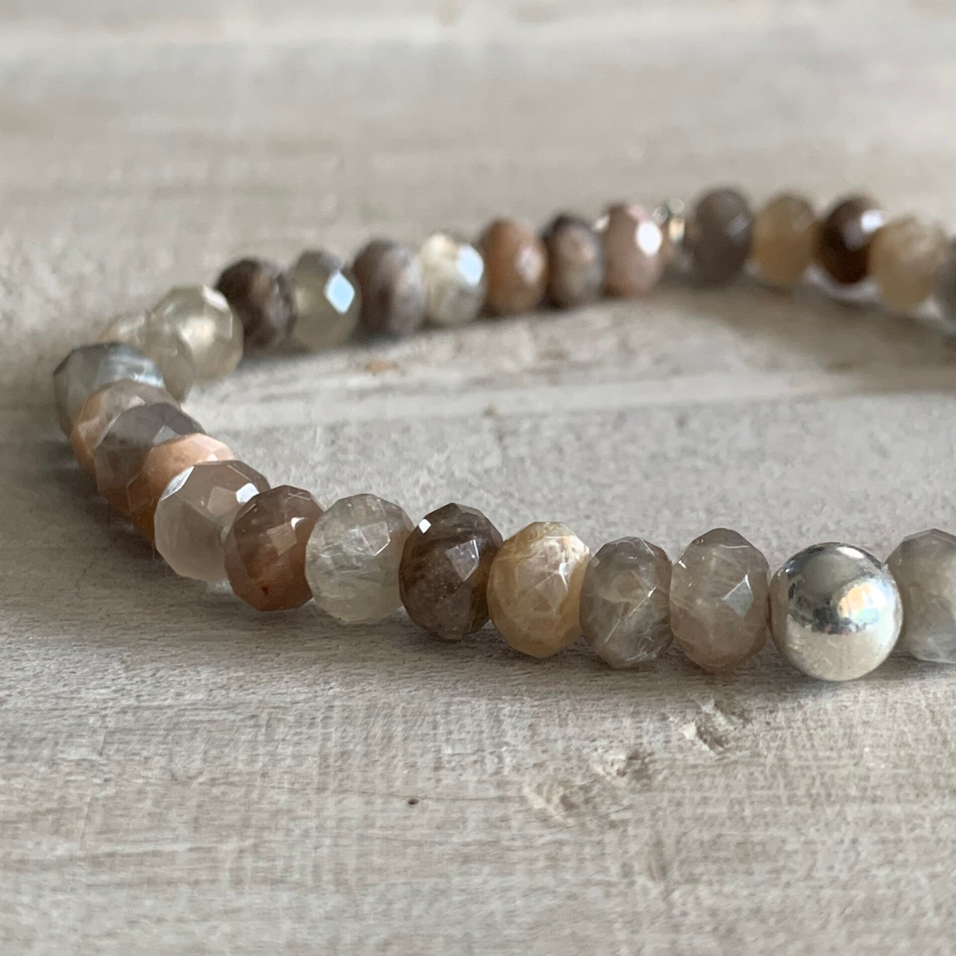 Im filigranen Edelstein Armband STERNBILD sind funkelnde Sonnen- und Mondstein Rondelle mit einem zarten Sterling Silber Rondell sowie einer minimalistischen Sterling Silber Perle, zu einem zeitlosen Lieblingsschmuckstück verarbeitet.