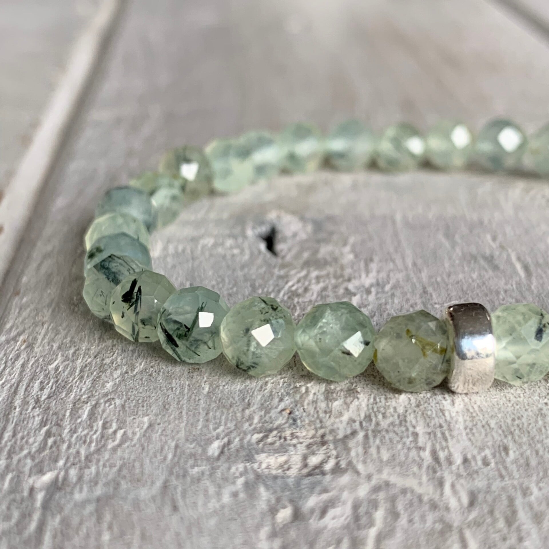 PREHNIT Edelstein Armband | 925 Sterling Silber | 6 mm | LAUCHGRÜN