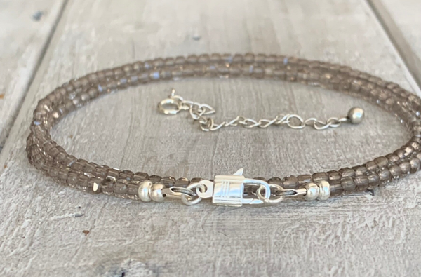 Die wunderschönen Würfelperlen sind ganz winzige ca. 2 - 2,5 mm fein und beeindrucken mit einer unbeschreiblichen Brillanz und herausragendem Glanz. Sobald sich das Licht in den filigranen Edelsteinperlen bricht, funkeln sie zauberhaft, obwohl sie so minimalistisch klein sind. Die schmeichelhafte Farbigkeit der edlen taupefarbenen Nuancen machen diesen Choker zu einem eleganten und zeitlosen Schmuckstück. Der EISBRECHER Choker ist ein ganz fein funkelnder Lichtblick am Hals, denn viel zarter kann ein Choker kaum mehr sein!