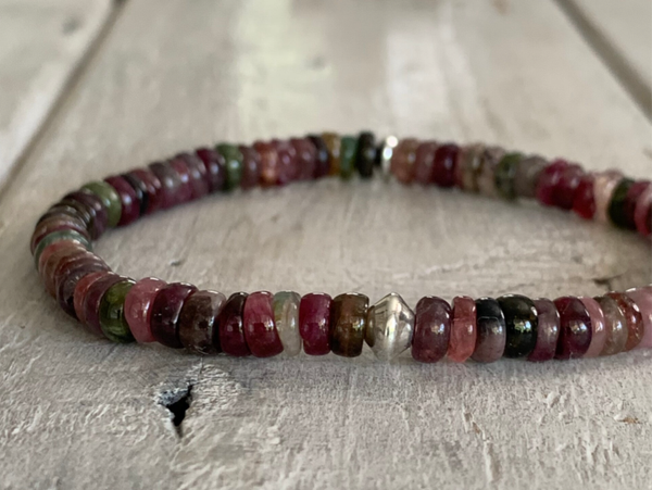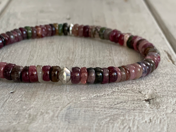 Das exklusive Turmalin Edelstein Armband BEERENSAFT beeindruckt mit wunderbar glatten Heishi Rondellen in einer außergewöhnlich schönen Qualität. Die eleganten ca. 6 x 2-3 mm zarten Rondelle verzaubern in verschiedenen beerenfarbigen Nuancen.