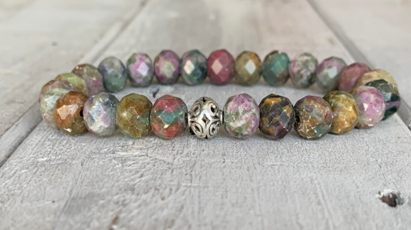 Rubin in Zoisit ist ein faszinierender Edelstein, der die feurige Leidenschaft von Rubin mit den erdenden und wachstumsfördernden Eigenschaften von Zoisit verbindet. Der Edelstein hat typischerweise verschiedene grüne Nuancen mit einer Reihe anderer Farben, darunter Rot, Rosa und Blau. Diese Farbvariationen sorgen dafür, das lebhafte Schmuckstücke aus diesen Edelsteinperlen entstehen, wobei sie mit ihren oft lebendig grünen Farbtönen an die Natur erinnern und Neubeginn und Hoffnung symbolisieren.