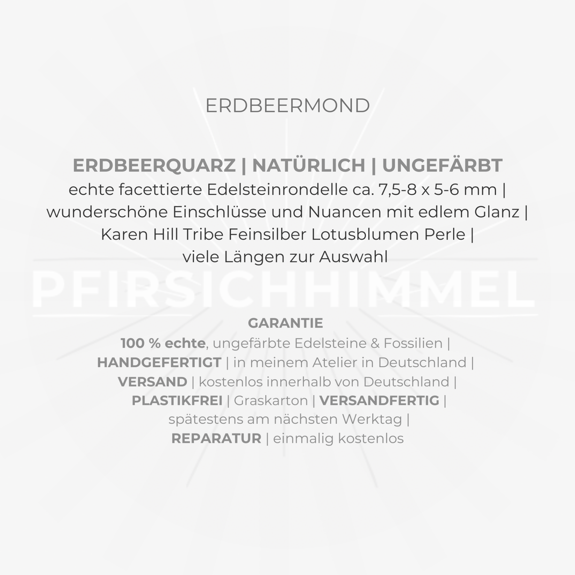 ERDBEERQUARZ Edelstein Armband | 8 mm Rondelle | Karen Hill Tribe Feinsilber Lotus | ERDBEERMOND