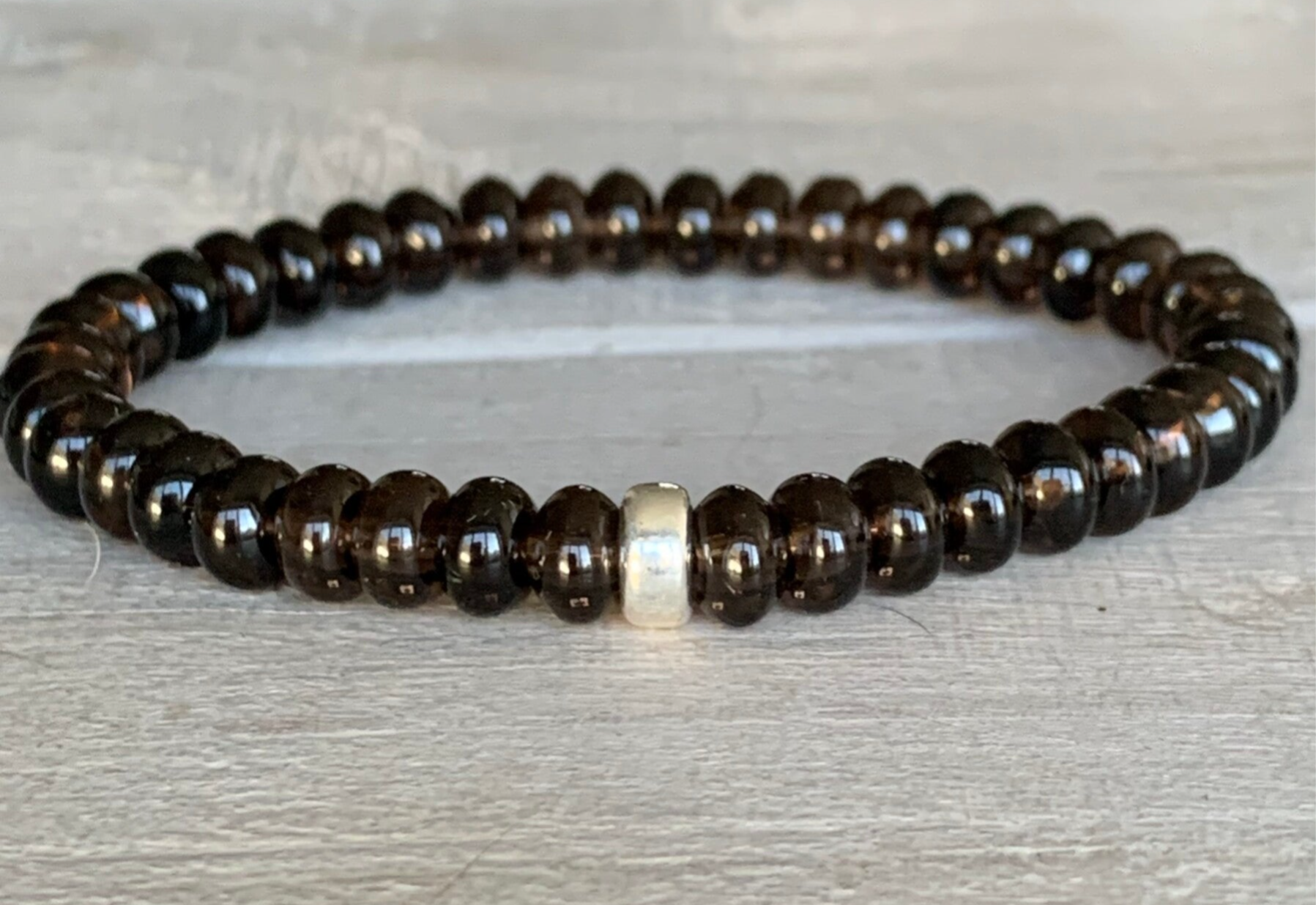 RAUCHQUARZ Edelstein Armband | 925 Sterling Silber Rondell | 6 mm | RUHEPOL