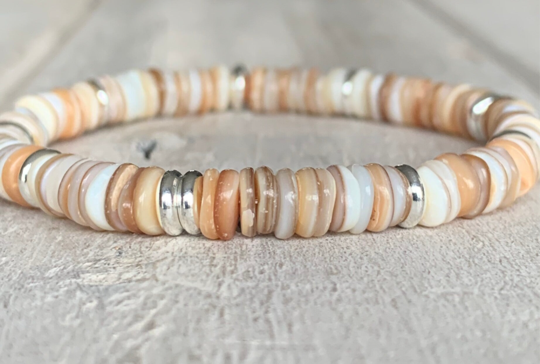 Muschel Armband | Heishi Naturmuscheln 5 - 6 mm | 925 Sterling Silber | KITE-10