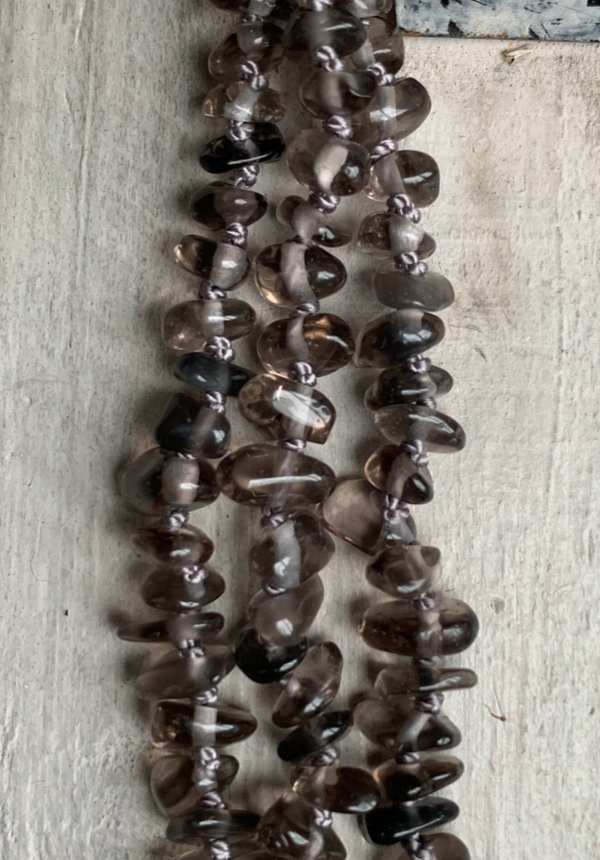 Die Besonderheit dieser Halskette ist die Knüpfung von Hand im Gegensatz zu ausschließlich gefädelten Perlen. Eine geknüpfte Edelsteinkette fällt besonders geschmeidig und unterstützt den Energiefluss der Natursteine. Das Ergebnis dieser traditionellen Knüpfung ist eine einzigartige Haptik mit besonders geschmeidigem Fall! Du merkst es sofort, sobald du die Kette in Händen hältst. Die QUIETSCHFIDEL Edelsteinkette wurde mit einer farblich passenden Knüpfseide geknüpft. Hinter jedem noch so kleinen Obsidiansplitter (und das sind sehr, sehr viele) sitzt ein handgeknüpfter Knoten und verstärkt so die Einzigartigkeit dieser filigranen Halskette!