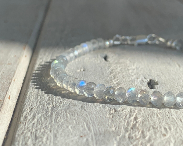 Das zarte Labradorit Armband haben wir bewusst minimalistisch gehalten. Wir fertigen es dir passgenau an, so dass die funkelnden Edelsteinrondelle im Fokus sind und nichts weiter von den wunderschönen Labradoritrondellen ablenkt. Die für deinen Armumfang exakte Größe ergibt einen hohen Tragekomfort, rundherum ganz schlicht und ohne hängende Elemente.
