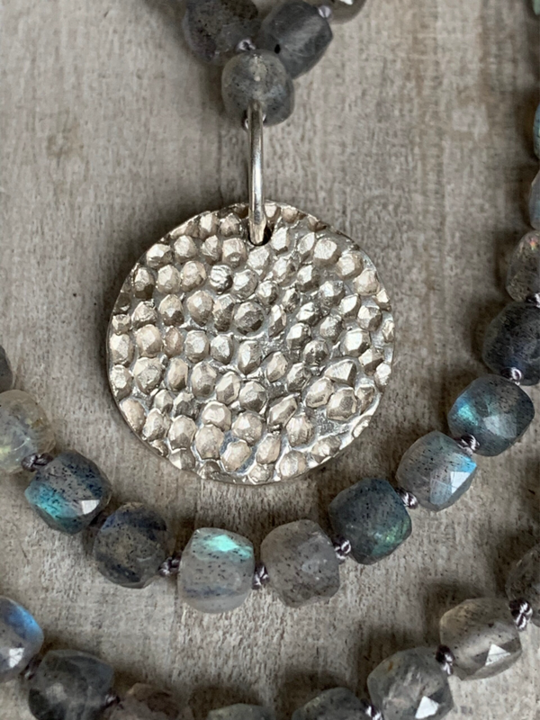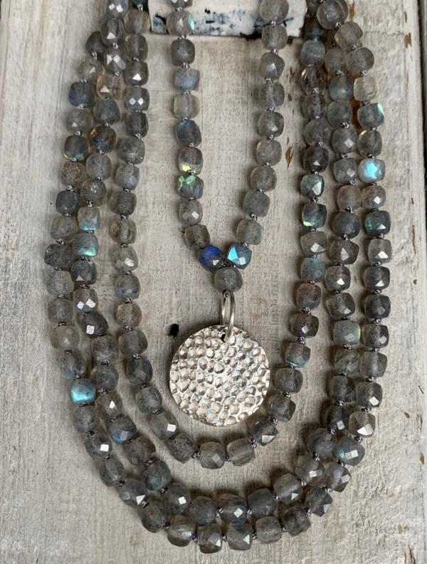 LABRADORIT Mala Edelstein Kette | handgeknüpft | handgefertigter 925 Sterling Silber Anhänger | 4mm | WETTERLEUCHTEN