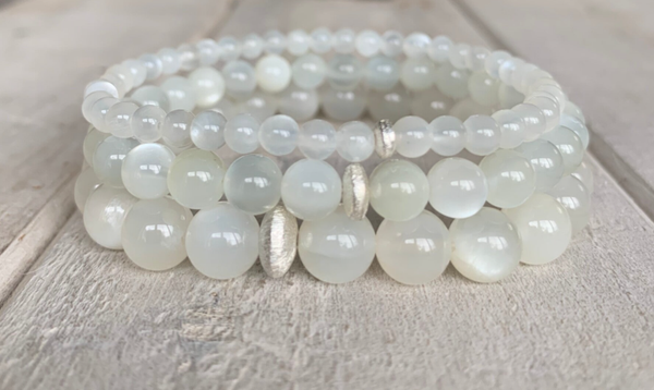 Mehrere Armbänder lassen sich perfekt im Layering-Look miteinander kombinieren und tragen. Stilsicher und harmonisch in verschiedenen Ausführungen. Echte Edelsteine faszinieren mit natürlicher Schönheit. Sterling Silber sorgt für eine cleane und moderne Note. Zum NEUMOND Armband gibt es noch genau passende Mondstein Armbänder aus 4, 8 und 12 mm großen Perlen. Zusammen getragen ergeben sie eine sehr elegante und mondäne Optik!