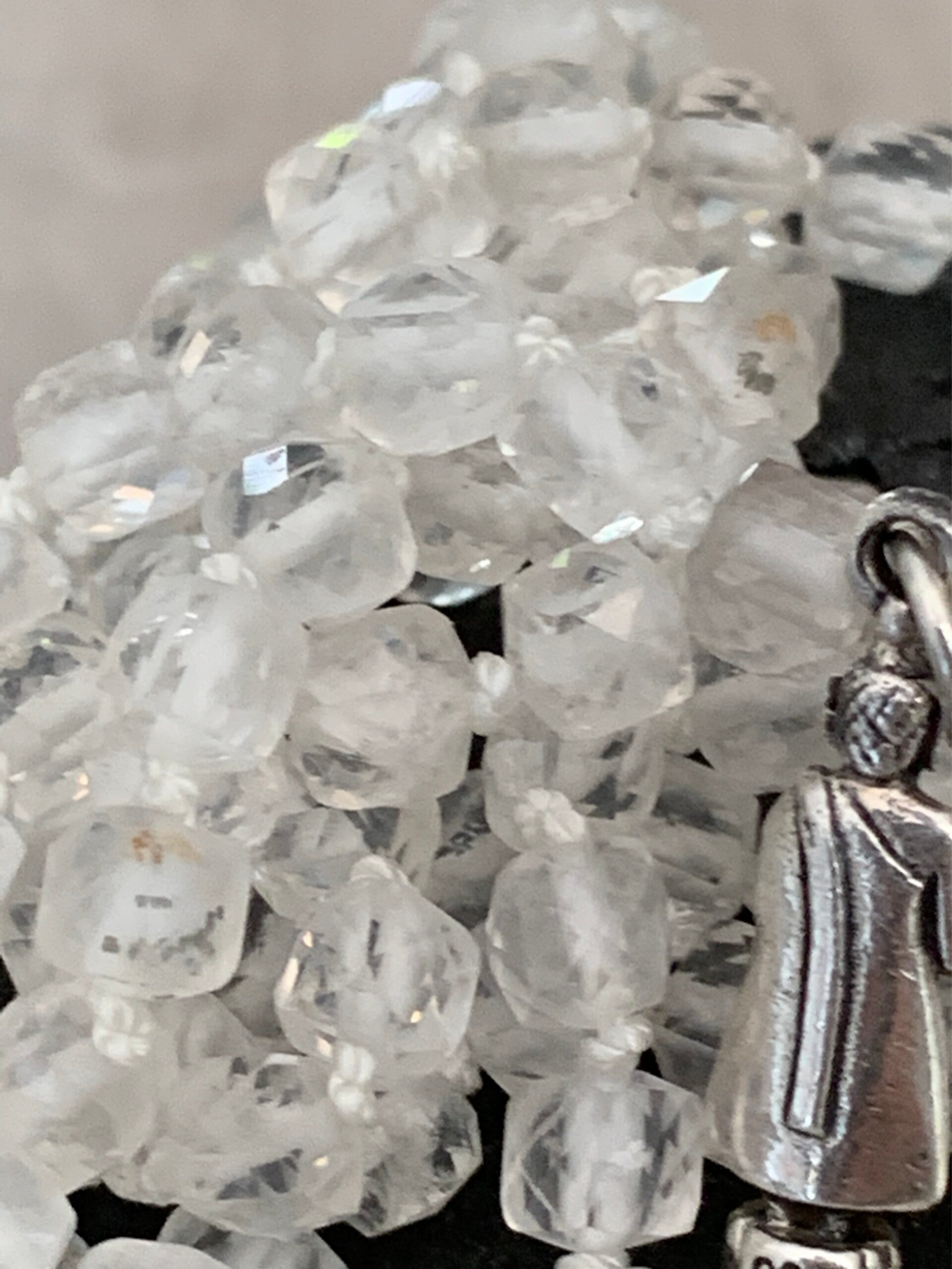 BERGKRISTALL Edelstein Halskette | handgeknüpfte Mala Kette | 925 Sterling Silber Buddha | 4 - 4,5 mm | GLÜCKSELIGKEIT