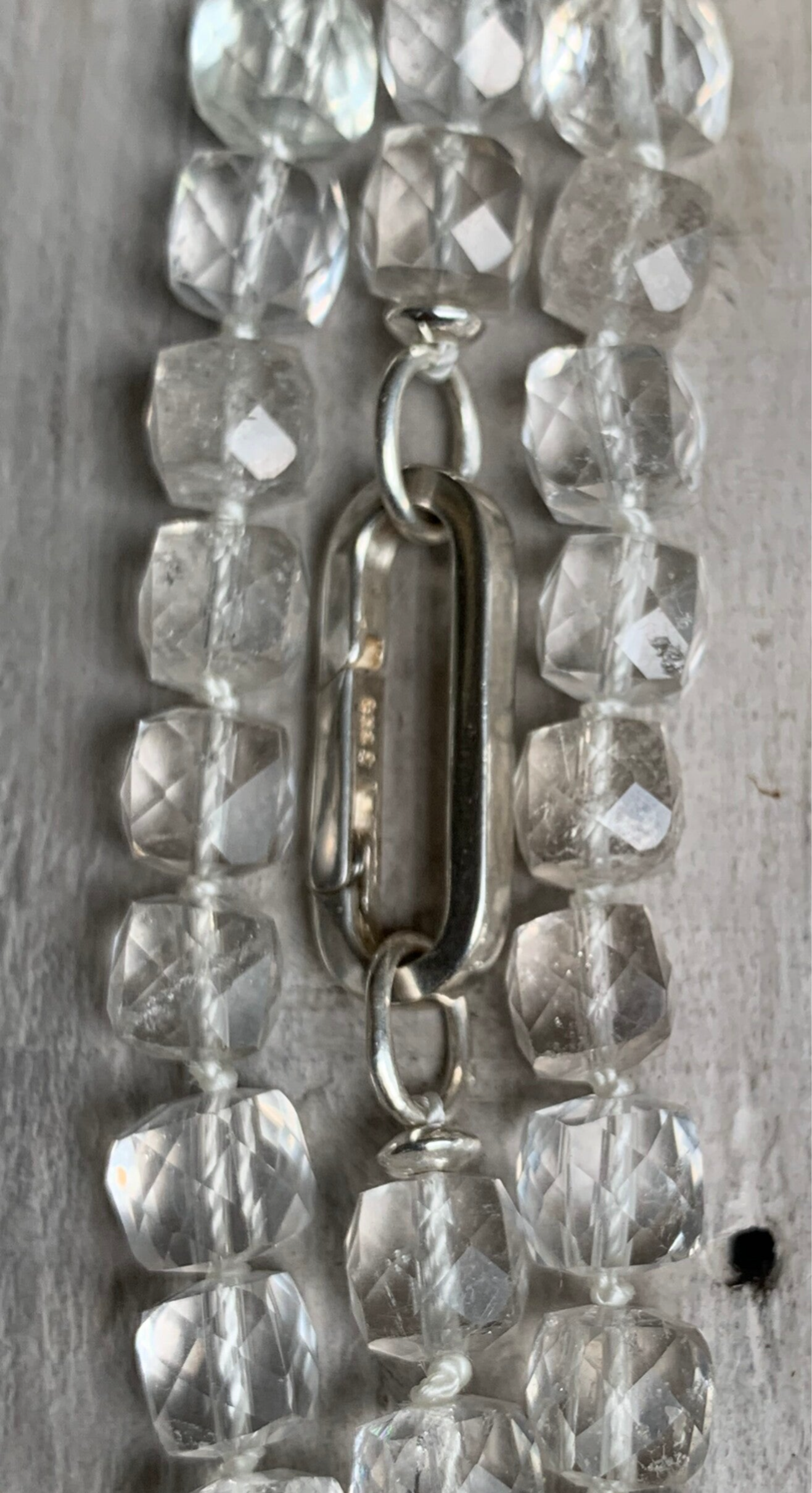 Im Alltag wird die echte handgeknüpfte Bergkristall Edelsteinkette SONNTAGSLAUNE schnell zu deinem Lieblingsschmuckstück. Die stilvoll funkelnden, quadratischen ca. 6 - 7 mm feinen Bergkristallwürfel fangen das Licht eindrucksvoll ein, sind mit einem minimalistischen 925 Sterling Silber Verschluss veredelt und verleihen deinem Outfit einen Hauch von Magie.