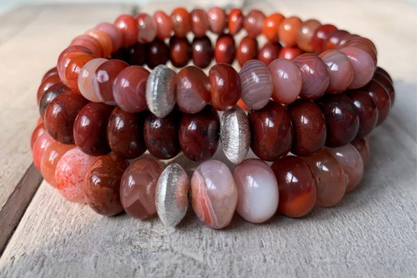 Im kraftvollen Achat Edelstein Armband PFIRSICHORANGE sind lebhafte Freiform-Rondelle, wahlweise in 8 oder 10 mm großen Edelsteinperlen, veredelt mit einem fein strukturierten 925 Sterling Silber Rondell, zu einem beeindruckenden Perlenarmband verarbeitet. Wie immer ist unser echter Schmuck in natura noch viel, viel schöner!