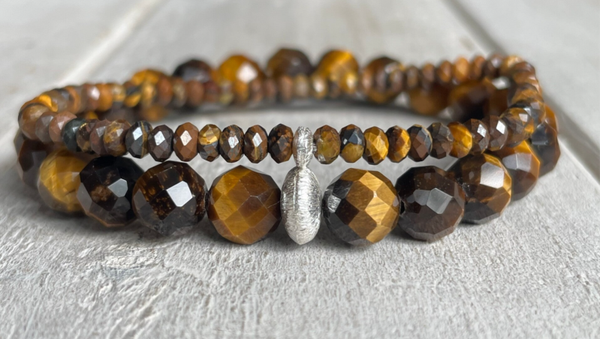 Mehrere Armbänder lassen sich perfekt im Layering-Look miteinander kombinieren und tragen. Stilsicher und harmonisch in verschiedenen Ausführungen. Echte Edelsteine faszinieren mit natürlicher Schönheit. Sterling Silber sorgt für eine cleane und moderne Note. Die Fotos mit mehreren Tigerauge Armbändern zeigen passende Gegenstücke aus 8 und 10 mm großen Edelsteinrondellen und -perlen. Du findest dieses Schmuckstück ebenfalls hier im Shop.
