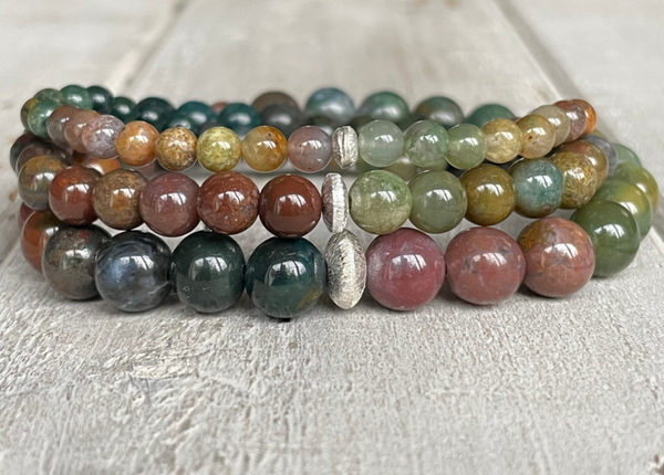 In den zauberhaften 4, 6, 8 oder 10 mm Achat Edelstein Armbändern WALDBADEN sind wunderschöne Achatperlen, veredelt mit einem fein strukturierten 925 Sterling Silber Rondell, zu einem kraftvollen Lieblingsschmuckstück im edlen Bohostyle verarbeitet.