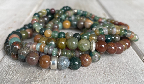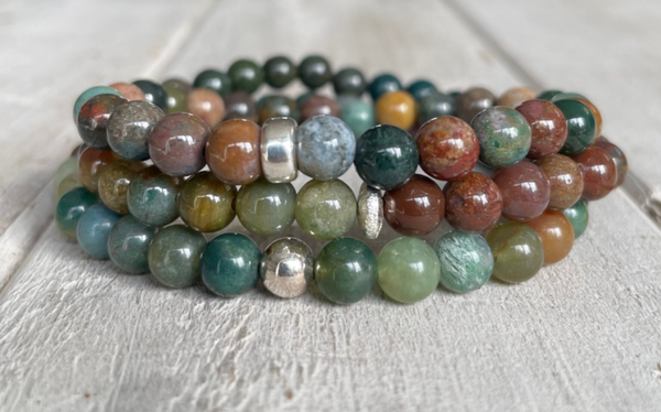 In den zauberhaften 4, 6, 8 oder 10 mm Achat Edelstein Armbändern WALDBADEN sind wunderschöne Achatperlen, veredelt mit einem feinen 925 Sterling Silber Element, zu einem kraftvollen Lieblingsschmuckstück im edlen Bohostyle verarbeitet.