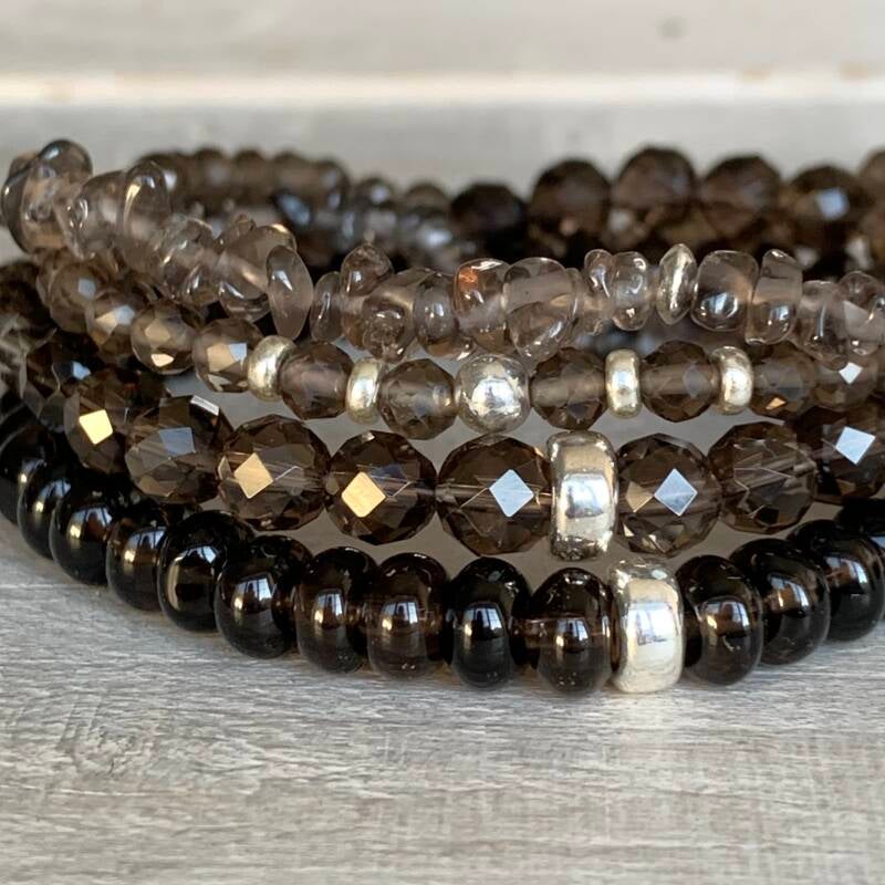 Mehrere Armbänder lassen sich perfekt im Layering-Look miteinander kombinieren und tragen. Stilsicher und harmonisch in verschiedenen Ausführungen. Echte Edelsteine faszinieren mit natürlicher Schönheit. Sterling Silber sorgt für eine cleane und moderne Note. Die Fotos sind alle unbearbeitet und bei natürlichem Tageslicht fotografiert. Die Bilder mit mehreren Rauchquarz Armbändern zeigen Gegenstücke aus 6 mm facettierten Edelsteinperlen sowie 6 mm Rondellen. Du findest diese Armbänder ebenfalls im Shop.