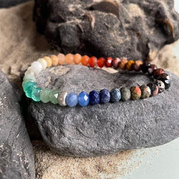 Wie eine blühende Alm im Sonnenschein zeigt sich dieses Armband in einer fröhlichen Mischung aus verschiedenen Farben und Nuancen. Jeder Edelstein erzählt seine eigene Geschichte – gemeinsam ergeben sie ein Schmuckstück, das Lebensfreude, Natürlichkeit und feine Eleganz wunderbar vereint.