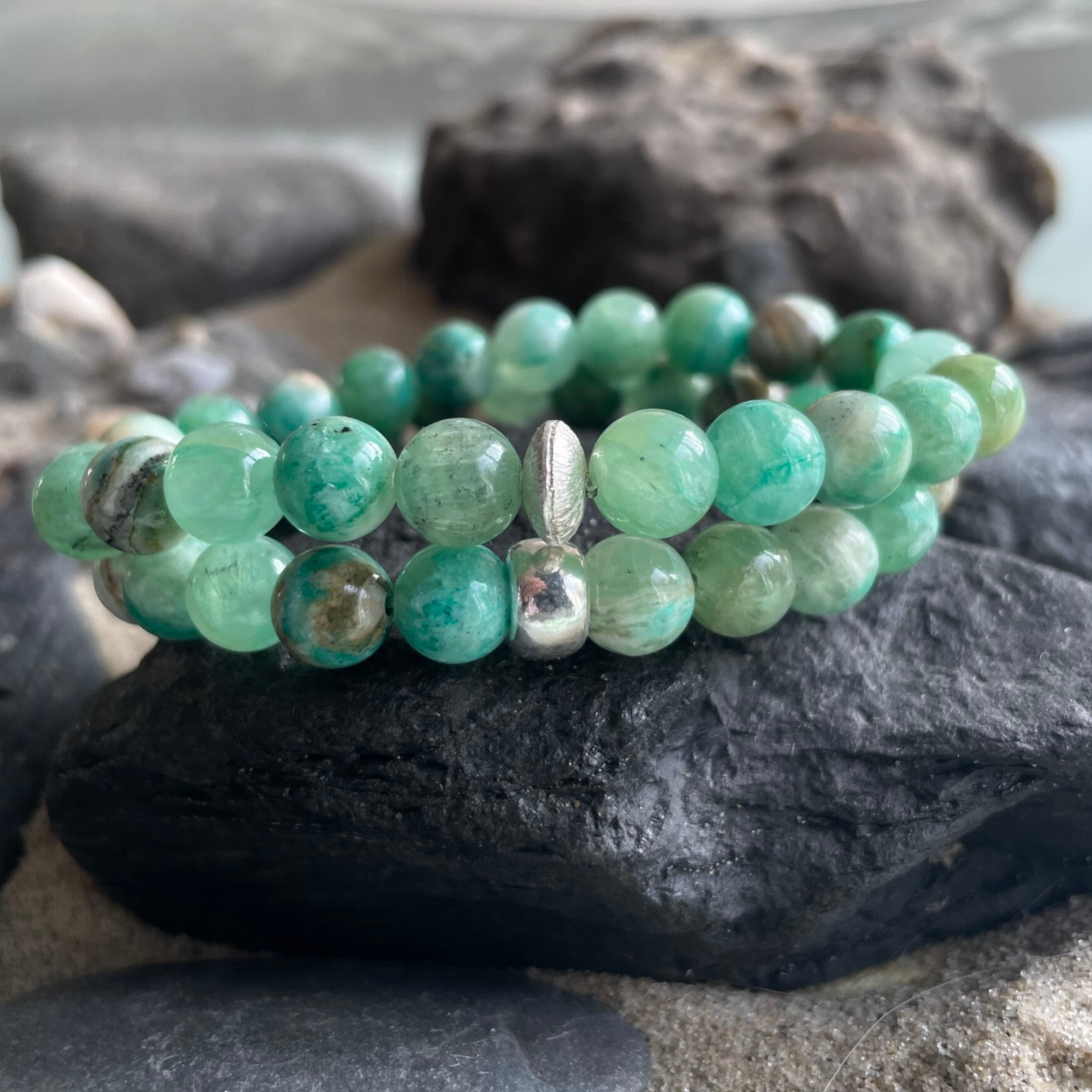 Mit seiner sanft erdenden Energie soll er das Vertrauen in den eigenen Weg und Gelassenheit schenken – wie ein stiller Spaziergang durch die Natur, der Körper und Seele zur Ruhe bringt. Ein natürlich schönes Armband – frisch, klar und beruhigend wie ein Tag in den Bergen.
