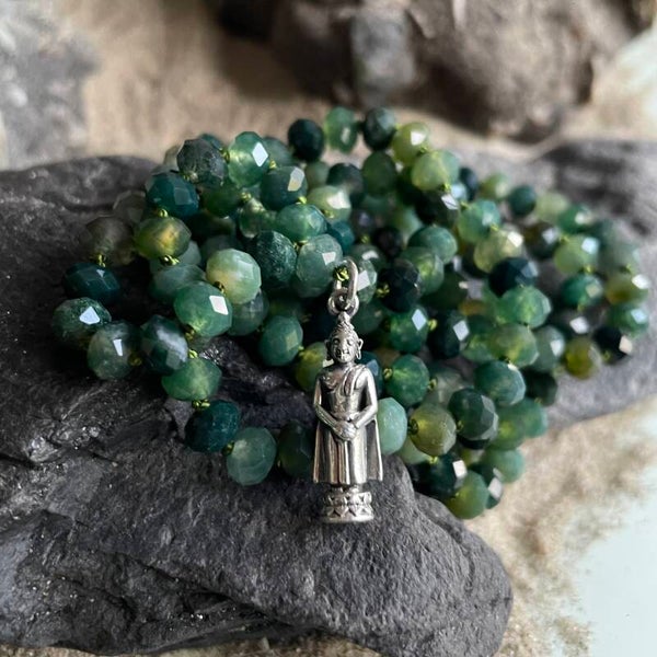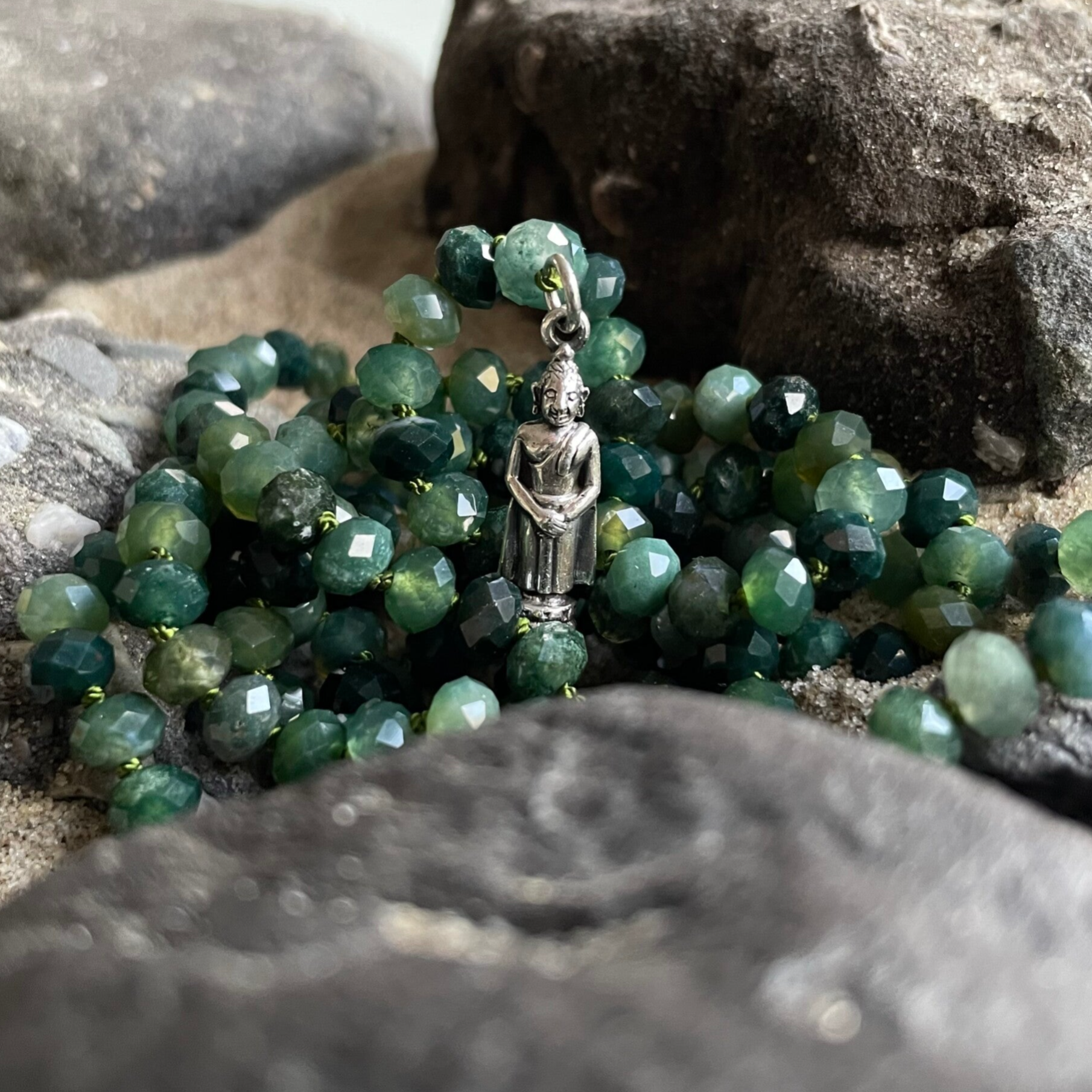 MOOSACHAT Mala Edelstein Halskette | handgeknüpft | 925 Sterling Silber | WANDERLUST BUDDHA