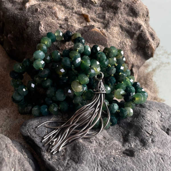 MOOSACHAT Mala Edelstein Halskette | handgeknüpft | 925 Sterling Silber | WANDERLUST QUASTE