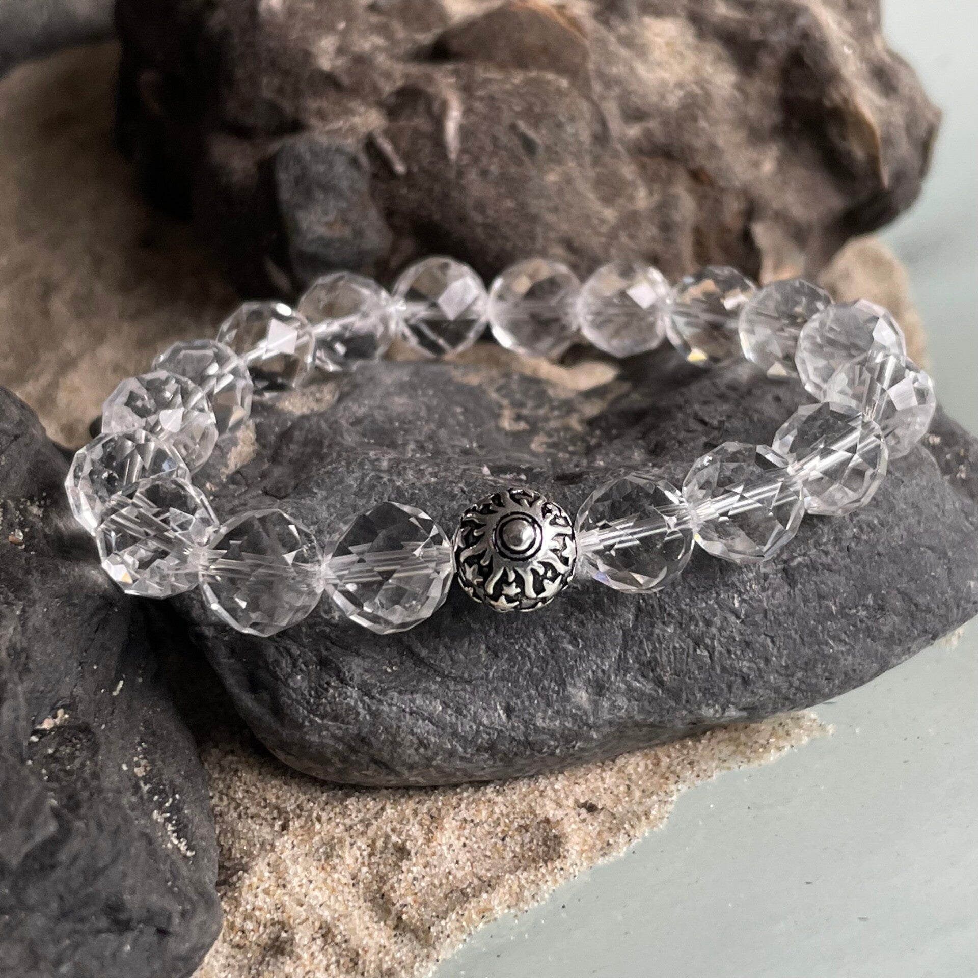 Im minimalistischen Bergkristall Edelstein Armband WASSERFALL sind beeindruckende 10 mm große, facettierte Bergkristallperlen zu einem elegant funkelnden Lieblingsschmuckstück verarbeitet. Die feinen Bergkristallperlen leuchten ganz zauberhaft denn hinzu kommt, das Bergkristalle in besonderer Weise das Licht brechen, fangen und verwandeln.