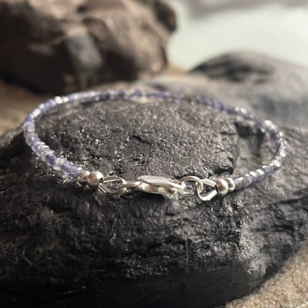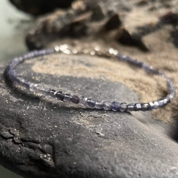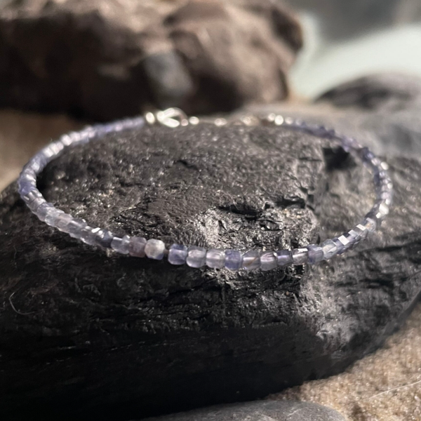 IOLITH Edelstein Armband | 925 Sterling Silber | 2 mm (!) | WALDZAUBERVIOLETT