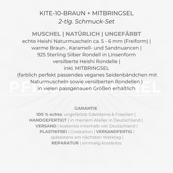 MUSCHEL Armband & MITBRINGSEL | 2-tlg. Schmuck-Set | Heishi Naturmuscheln 5 - 6 mm | 925 Sterling Silber | KITE-10-BRAUN