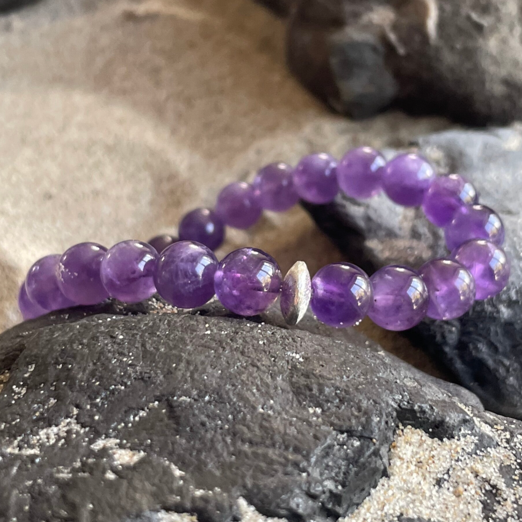 AMETHYST Edelstein Armband | 925 Sterling Silber | 8 mm | SEELENGLÜCKLICH