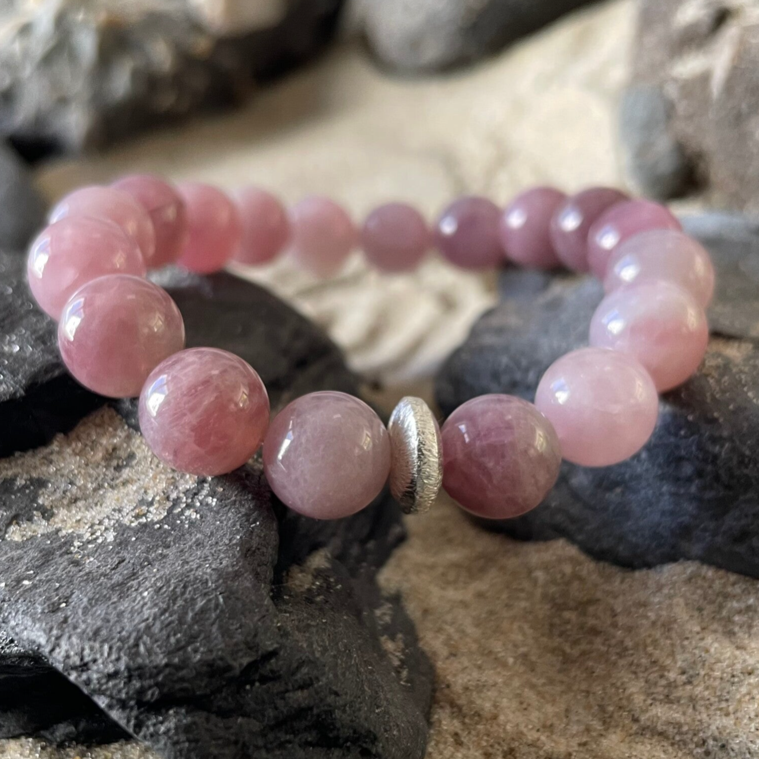Ein feines Edelsteinarmband, das die ganze Farbpoesie des Rosenquarzes einfängt – weich, lebendig und von natürlicher Schönheit.
