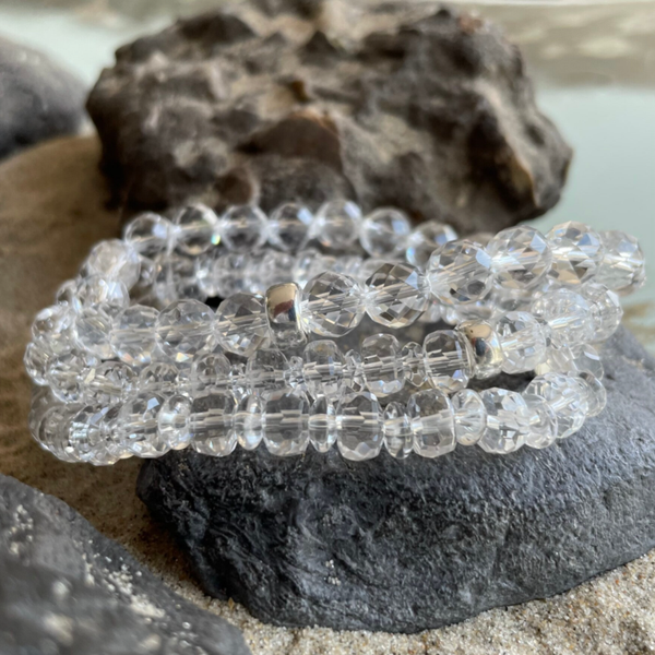Die 8 mm facettierten Bergkristallperlen verzaubern mit einer nahezu schwerelosen Transparenz und einer faszinierenden Brillanz. Jede einzelne Facette fängt das Licht ein und bricht es in ein edles, lebendiges Funkeln – klar, rein und von einer ganz eigenen Strahlkraft.
